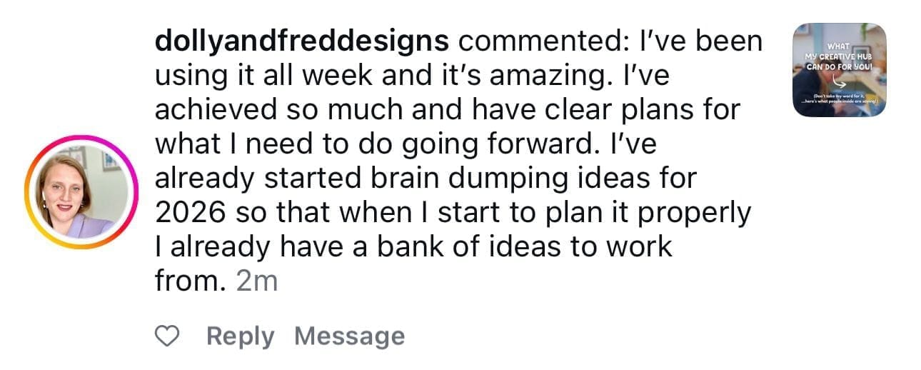 The systems I’ve built inside My Creative Hub are exactly what helped me stay consistent, grow my audience, and keep my business running, even when life was chaotic.